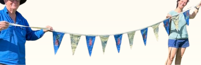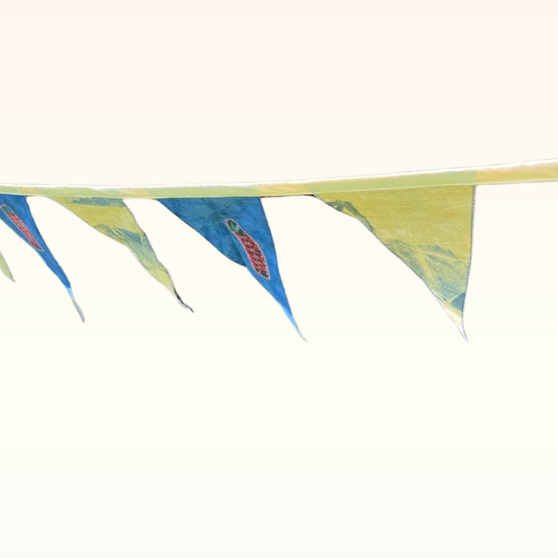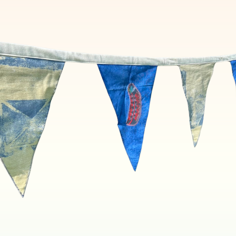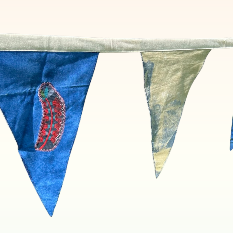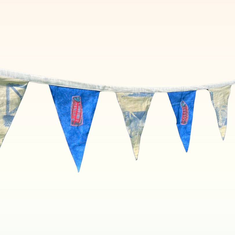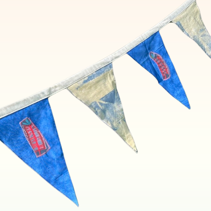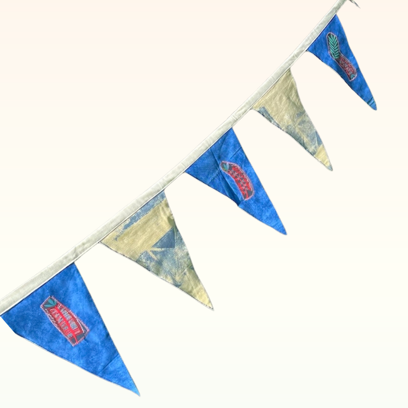 Bunting offers a charming, eco-friendly, and reusable alternative to balloons. Lovingly crafted by volunteers from Re-made at B4C, this beautiful bunting is made from repurposed, recycled, and remnant fabrics. It not only adds aesthetic appeal but also helps reduce balloon pollution and keeps fabric out of landfills.